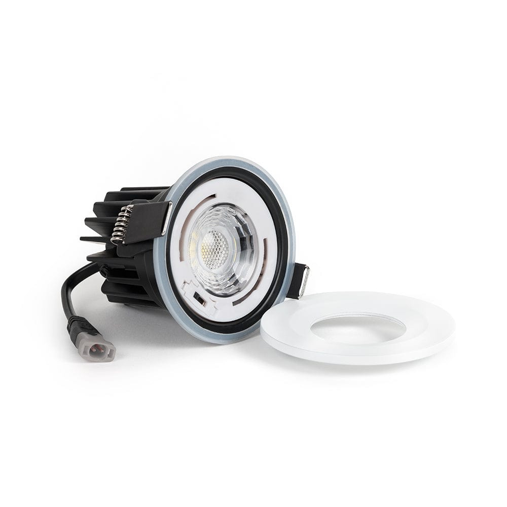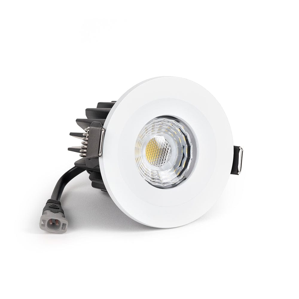 This fixed LED downlight with a matt white bezel from our collection of beautiful dimmable fire rated downlights has a front-facing CCT easy switch (Changing Colour Temperature) for easy access which enables you to quickly change between 3000K (warm white), 4000K (daylight white) and 6000K (cool white).