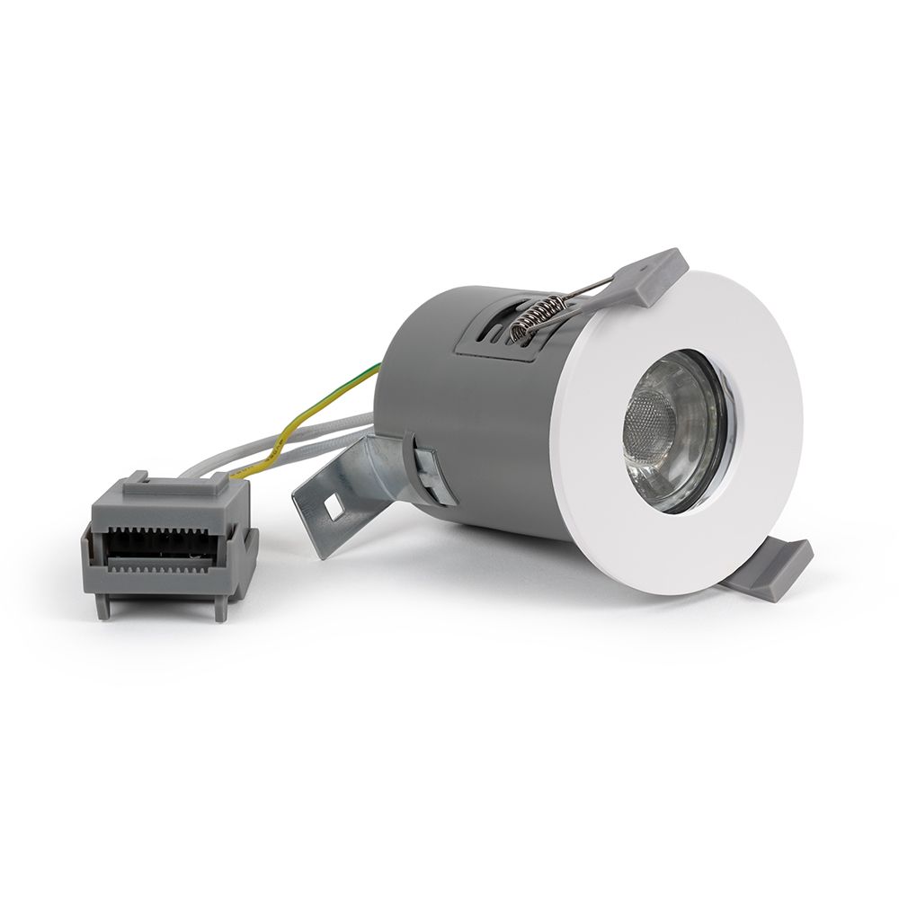 A stylish GU10 fire rated downlight that is built with high quality components. Fire rated to 60 and 90 minutes, and robustly built with 2 connector clips for easy installation.
