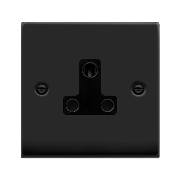 Matt Black 1 Gang 5A Round Pin Socket - Black Trim