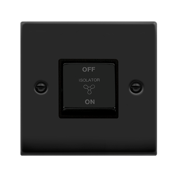 Matt Black 10A 1 Gang Ingot 3 Pole Fan Isolation Switch - Black Trim