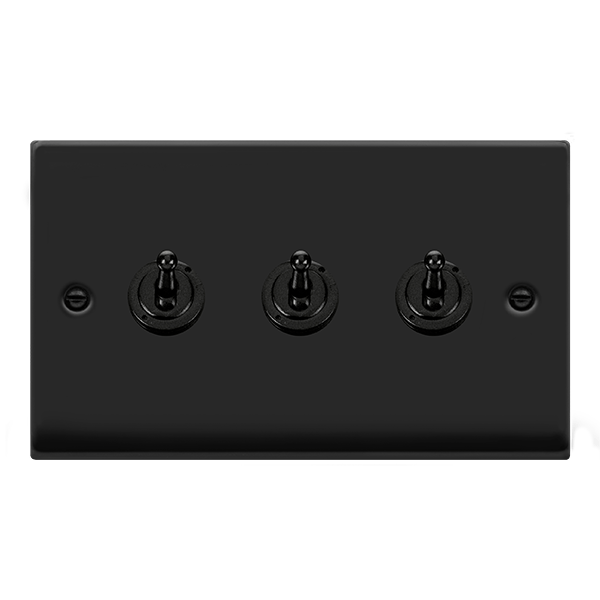 Matt Black 3 Gang 2 Way 10AX Toggle Light Switch