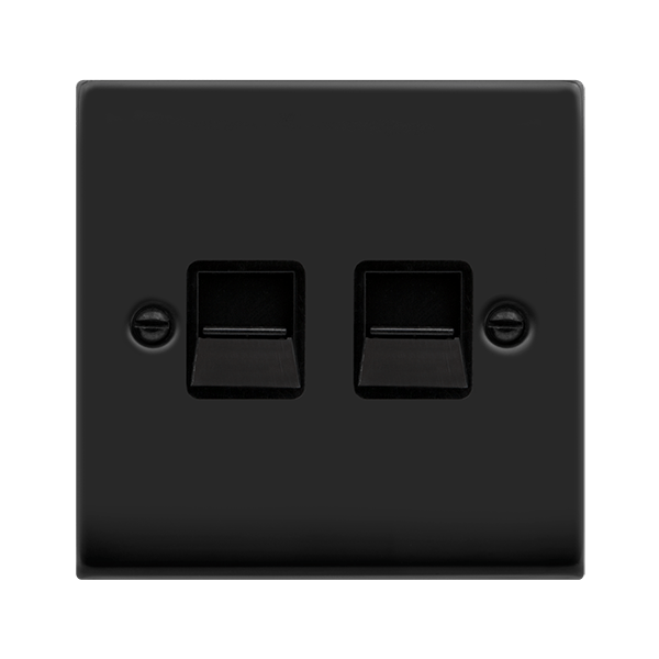 Matt Black Master Telephone Twin Socket - Black Trim