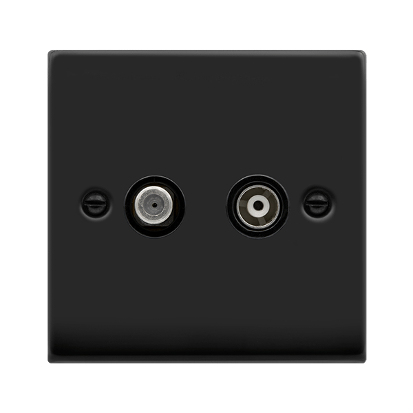 Matt Black Satellite And Isolated Coaxial 1 Gang Socket - Black Trim