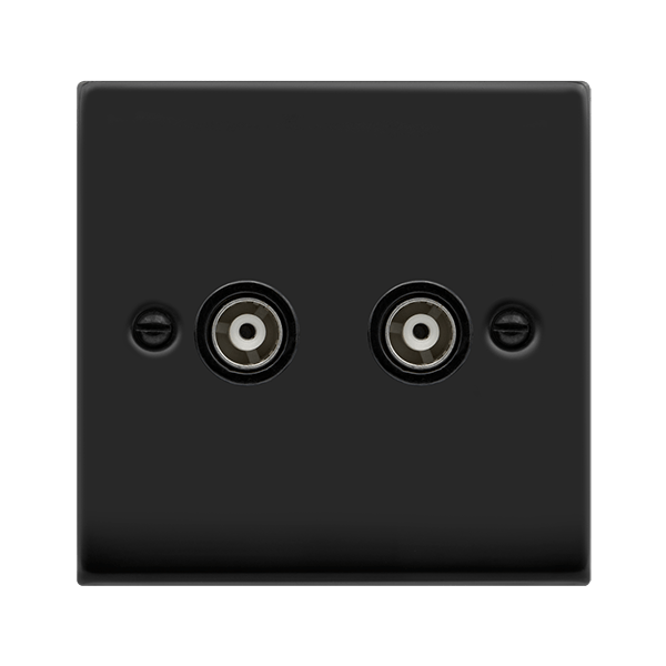 Matt Black Twin Isolated Coaxial Socket - Black Trim