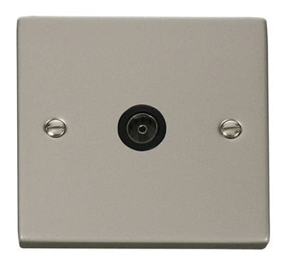 Pearl Nickel 1 Gang Single Coaxial TV Socket - Black Trim