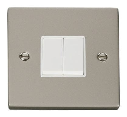 Pearl Nickel 10A 2 Gang 2 Way Light Switch - White Trim