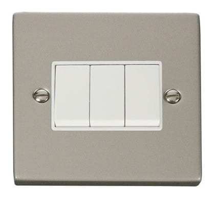 Pearl Nickel 10A 3 Gang 2 Way Light Switch - White Trim