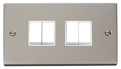 Pearl Nickel 10A 4 Gang 2 Way Light Switch - White Trim