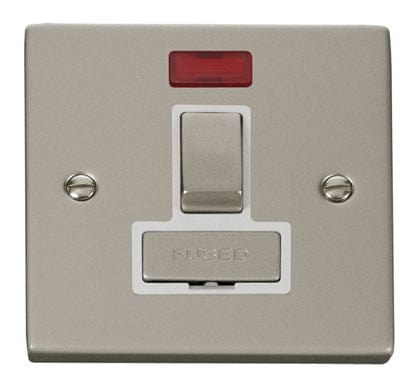 Pearl Nickel 13A Fused Ingot Connection Unit Switched With Neon - White Trim