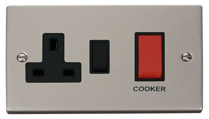 Pearl Nickel Cooker Control 45A With 13A Switched Plug Socket - Black Trim