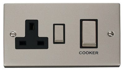 Pearl Nickel Cooker Control Ingot 45A With 13A Switched Plug Socket - Black Trim