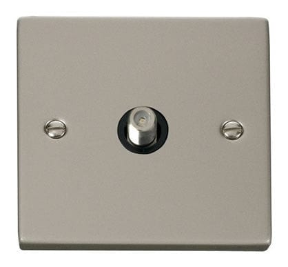 Pearl Nickel Satellite Socket 1 Gang - Black Trim