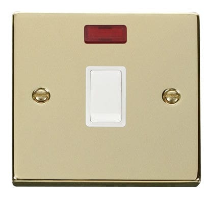 Polished Brass 1 Gang 20A DP Switch With Neon - White Trim