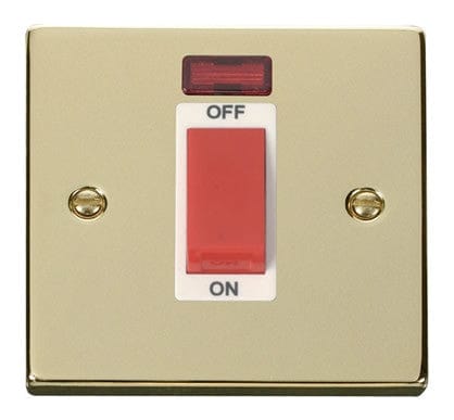 Polished Brass 1 Gang Size 45A Switch With Neon - White Trim
