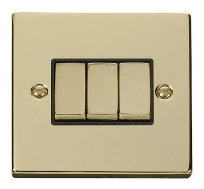 Polished Brass 10A 3 Gang 2 Way Ingot Light Switch - Black Trim