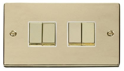 Polished Brass 10A 4 Gang 2 Way Ingot Light Switch - White Trim