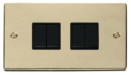 Polished Brass 10A 4 Gang 2 Way Light Switch - Black Trim