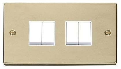 Polished Brass 10A 4 Gang 2 Way Light Switch - White Trim