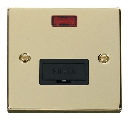 Polished Brass 13A Fused Connection Unit With Neon - Black Trim