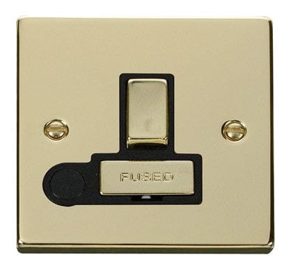 Polished Brass 13A Fused Ingot Connection Unit Switched With Flex - Black Trim