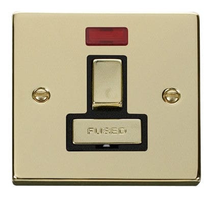 Polished Brass 13A Fused Ingot Connection Unit Switched With Neon - Black Trim