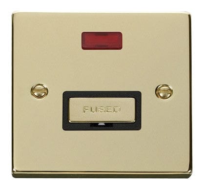 Polished Brass 13A Fused Ingot Connection Unit With Neon - Black Trim