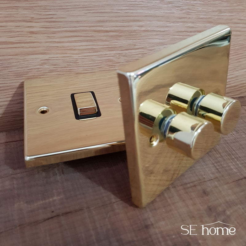 Polished Brass 2 Gang 2 Way 10AX Toggle Light Switch