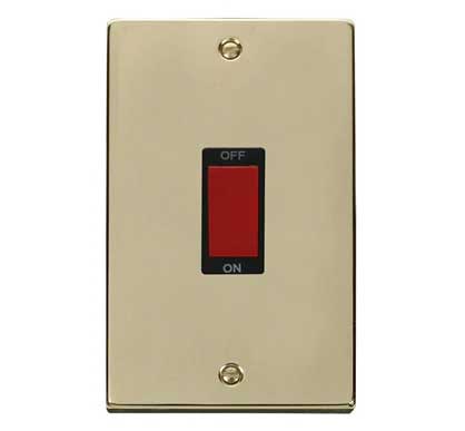Polished Brass 2 Gang Size 45A Switch - Black Trim
