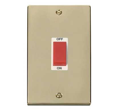 Polished Brass 2 Gang Size 45A Switch - White Trim