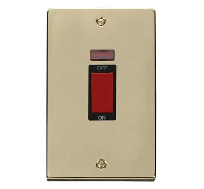 Polished Brass 2 Gang Size 45A Switch With Neon - Black Trim