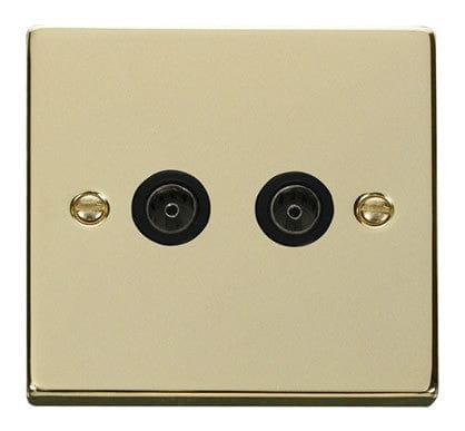 Polished Brass 2 Gang Twin Coaxial TV Socket - Black Trim