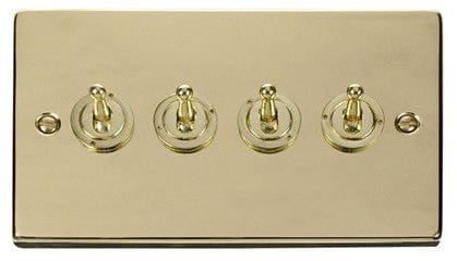 Polished Brass 4 Gang 2 Way 10AX Toggle Light Switch