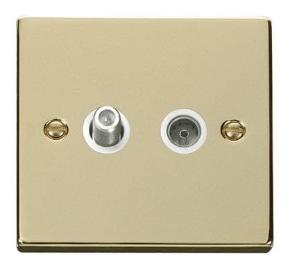 Polished Brass Satellite & Coaxial Socket 1 Gang - White Trim