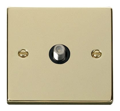 Polished Brass Satellite Socket 1 Gang - Black Trim