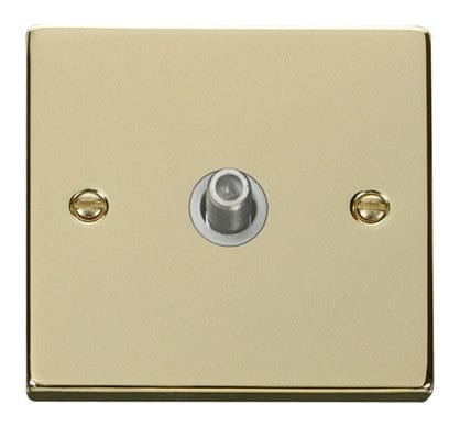 Polished Brass Satellite Socket 1 Gang - White Trim