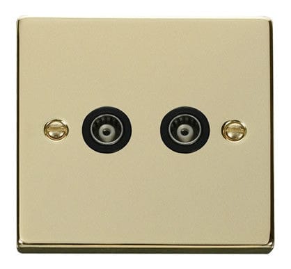 Polished Brass Twin Isolated Coaxial Socket - Black Trim