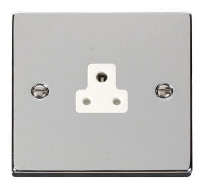 Polished Chrome 1 Gang 2A Round Pin Plug Socket - White Trim