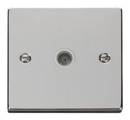 Polished Chrome 1 Gang Single Coaxial TV Socket - White Trim