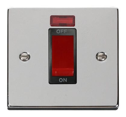Polished Chrome 1 Gang Size 45A Switch With Neon - Black Trim