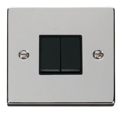 Polished Chrome 10A 2 Gang 2 Way Light Switch - Black Trim