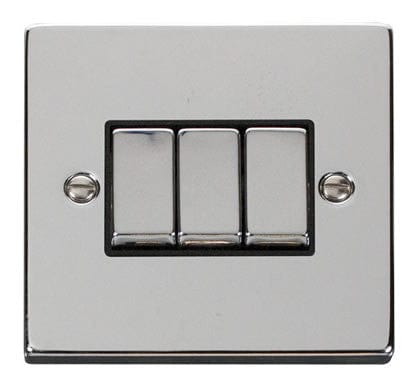 Polished Chrome 10A 3 Gang 2 Way Ingot Light Switch - Black Trim