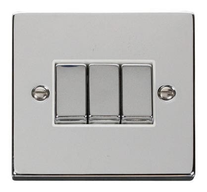 Polished Chrome 10A 3 Gang 2 Way Ingot Light Switch - White Trim