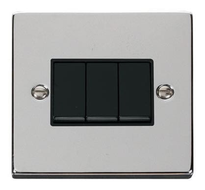 Polished Chrome 10A 3 Gang 2 Way Light Switch - Black Trim