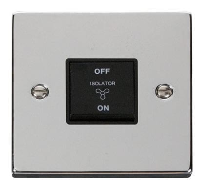 Polished Chrome 10A 3 Pole Fan Isolation Switch - Black Trim