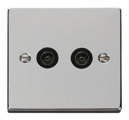 Polished Chrome 2 Gang Twin Coaxial TV Socket - Black Trim