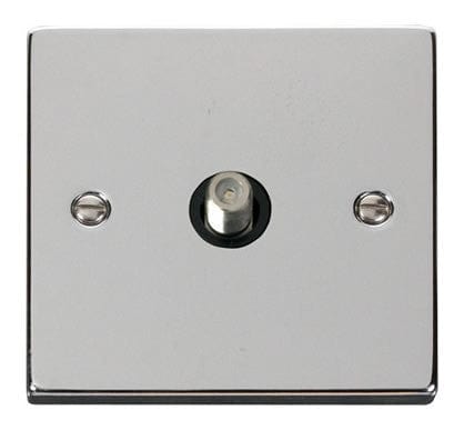 Polished Chrome Satellite Socket 1 Gang - Black Trim