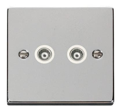 Polished Chrome Twin Isolated Coaxial Socket - White Trim