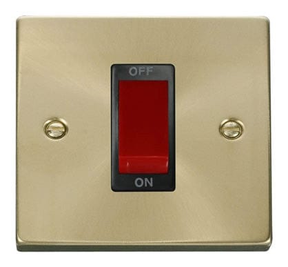 Satin Brass 1 Gang Size 45A Switch - Black Trim