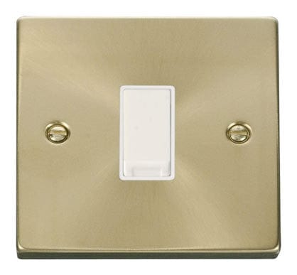 Satin Brass 10A 1 Gang 2 Way Light Switch - White Trim