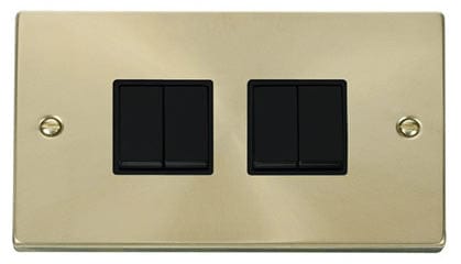 Satin Brass 10A 4 Gang 2 Way Light Switch - Black Trim